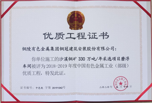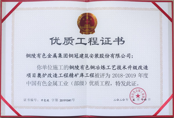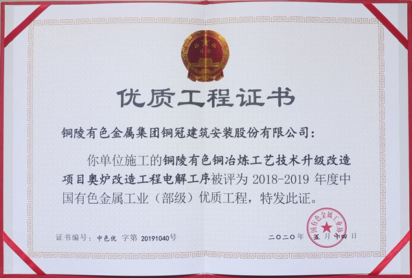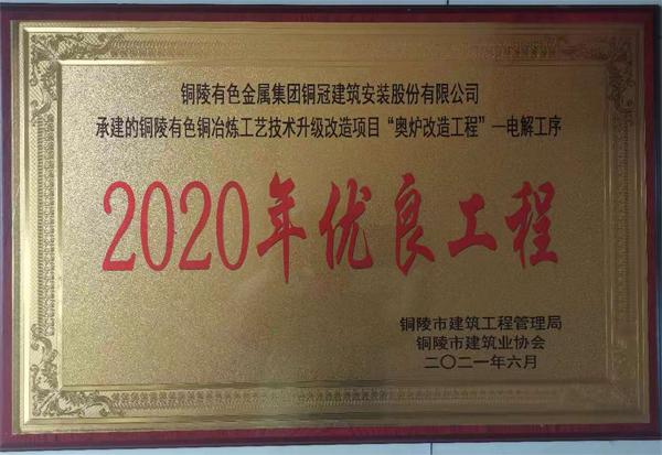 • 銅陵市2020年優良工程(銅陵有色銅冶煉...